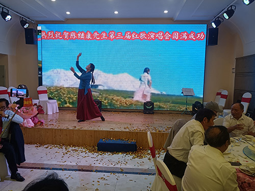“蓝蓝的天上白云飘,白云下边马儿跑……”熟悉的旋律响起,一场跨越岁月的音乐盛宴拉开帷幕。11月1日下午4点,江苏省盐城市大丰区农业银行退休干部、大丰区新春皮毛厂厂长、中国红诗人之一,古稀老人陈继康在当地大丰盛宴酒店举办了第三届红歌独唱会。用他的歌声,抒发自己的爱党情怀,为现场观众带来了一场难忘的视听体验。
