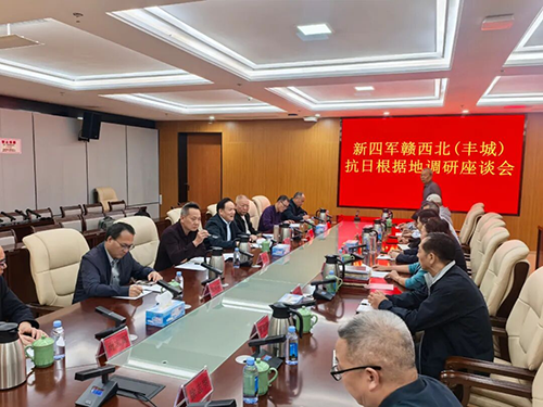 (甘本新)2025 年10月17 日至19 日,围绕“新四军赣西北(丰城)抗日根据地史实探究”主题,江西省丰城市新四军及红色文化研究会组织开展实地考察调研活动。江西省新四军历史研究会副会长余秀萍、赖庆、蒋明、熊河水,宜春市新四军及红色文化研究会常务副会长甘本新,宜春市史志办主任、市新四军及红色文化研究会副会长巢瑞隆等相关单位负责人、专家学者参加考察活动。丰城市委副书记陈志军,丰城市新红会会长丁玲陪同调研。1938 年至1942年,按照中共东南分局的统一部署,新四军驻赣办事处负责人黄道领导赣西北抗日根据地建设,其中丰城发挥了重要的历史作用。在中共丰城前方工作委员会旧址、夏征农抗战宣传演讲处旧址、丰城县自卫大队整训地旧址等9 处红色遗址,考察组围绕丰城在抗日战争时期的党组织建设、政权建设、宣传动员、干部培训、武装斗争等脉络,全面梳理新四军赣西北(丰城)抗日根据地的形成与发展历程。考察组认为,新四军赣西北(丰城)抗日根据地,党组织体系非常健全,抗日救亡运动非常活跃,政权建设脉络非常清晰,敌后抗日根据地的地位和作用非常明显,应该把红色历史挖掘好,红色文化弘扬好。