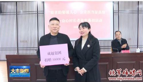 日前,在盐城市大丰区西团镇众心村长者食堂募捐活动上,大丰区政协委员、大丰区红色资源保护与发展协会副协会、江苏成越集团董事长陈汉兵带头捐赠1万元,用实际行动履行了民营企业的社会责任。
