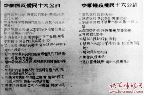 成立之初的新四军,由于长期游击作战,养成了许多游击习气,因此,新四军组建不久即制定了十条军规,制定了“三大纪律”“六大要求”“十大注意”,以铁的纪律制度约束广大指战员。美国著名的战地记者杰克·贝尔登在《新型的人民军队》一文中,用大量篇幅介绍了新四军“三大纪律”“六大要求”“十大注意”的具体内容,并指出这些都是新四军的每个士兵必须遵守的,谁要是违反都要受到处罚。爱泼斯坦在《人民之战》中还写道:“贝尔登把新四军守则译成了英文。他根据自己的亲眼观察,他们的确是身体力行的。”