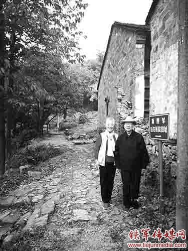 新四军老战士夏强毅、袁立夫妇在十六旅野战后方医院旧址留影